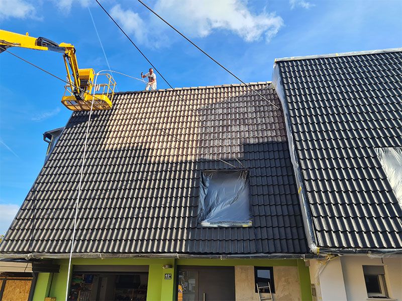 Pri barvanju oz. obnovitvi kritine, podaljšamo dobo same kritine za 25 let, s tem pa dobimo tudi nov izgled strehe oz. objekta. Z barvanjem se izognemo menjavi same kritine, največkrat pa moramo ob menjavi kritine zamenjati tudi letve, obrobe, strelovode,.... V kolikor je kritina starejša od 7 let, moramo kritino oprati z visokotlačnim čistilnikom, nato se stojno nanese namensko barvo Caparol DISBOROOF 408 v enkratnem ali po potrebi dvakratnem nanosu. Če je kritinia mlajša od 5 let oz. če ni porozna, moramo pred barvanjem nanesti predpremaz 481 EP-Uniprime. Barva je na voljo v štirih različnih tonih in sicer: Antracitna, opečno rdeča, temno rjava, rdeče rjava.